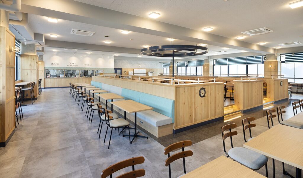 - 実は当初のご相談は一部改修だったのですが、課題や想いを伺うほどに、フルリニューアルすべきだと感じていて。思い切ってまったく新しい学生食堂のデザインをご提案させていただきました。