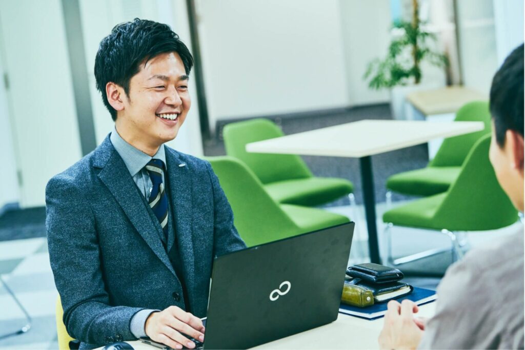 ユニフォームの新規案件は、お客さまから提案の話をいただいて始まります。そのときお客さまに「あの会社に声をかけてみよう」と思ってもらえるようにすることが、僕たち営業の最初の仕事です。その中でも僕は、あの会社、ではなく「あいつに声をかけてみよう」と思ってもらうことを目標にしています。他社とモノの比較では発注先を決めかねる状況になったとき、最後はヒトの力で自社の商品を選んでいただけるような、そんな営業マンになりたいと毎日努力しています。何よりマニュアル化された営業マンにならないことを常に心がけて活動しています。もちろん自社の商品には誰よりも自信を持っています!