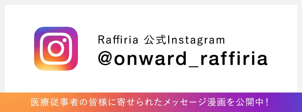 トップ トピックス メディカルウェアブランド「Raffiria」公式Instagramの公開開始 2020/06/22 メディカルウェアブランド「Raffiria」公式Instagramの公開開始 メディカル トピックス一覧へもどる ONWARDのメディカルウェアブランド「Raffiria」公式Instagramを始めました。 皆様からお寄せいただいた、医療従事者の皆様への【ありがとうエピソード】を公開中です。 トピックス一覧へもどる