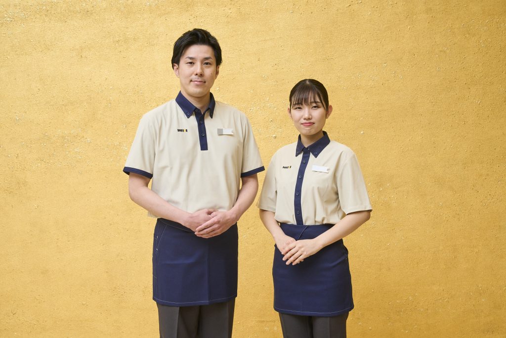 約8年ぶりに一新される新ユニフォームは実際に着用する従業員の意見を積極的に取り入れ、機能性やファッション性に加え、生地素材の一部に漂着ペットボトル由来の素材である「UpDRIFT®」※を採用しています。