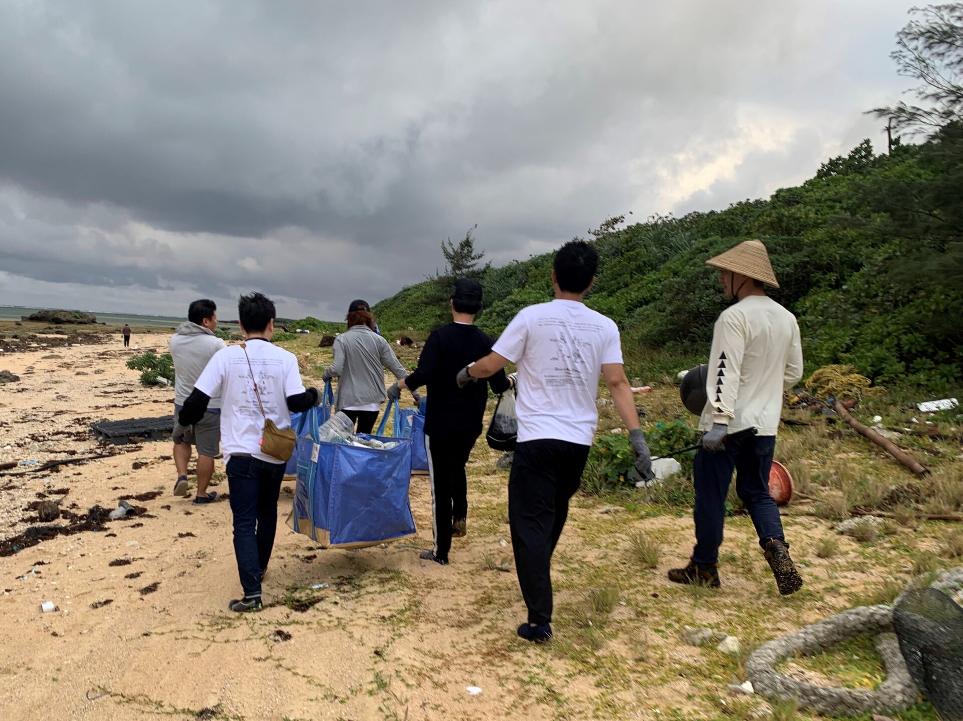 ▲沖縄県石垣市にて、ドトールコーヒーの従業員とともに、素材の一部に採用している「UpDRIFT®」の原料である漂着ペットボトルごみを回収するビーチクリーン活動に参加した様子
