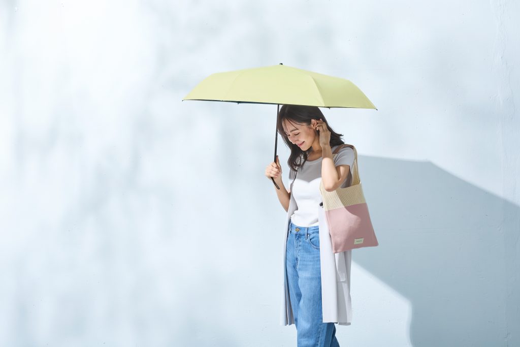 UV CUT99.9%の1級遮光で夏らしいカラー、シンプルかつ使いやすい、洗練されたデザインの折り畳み傘です。