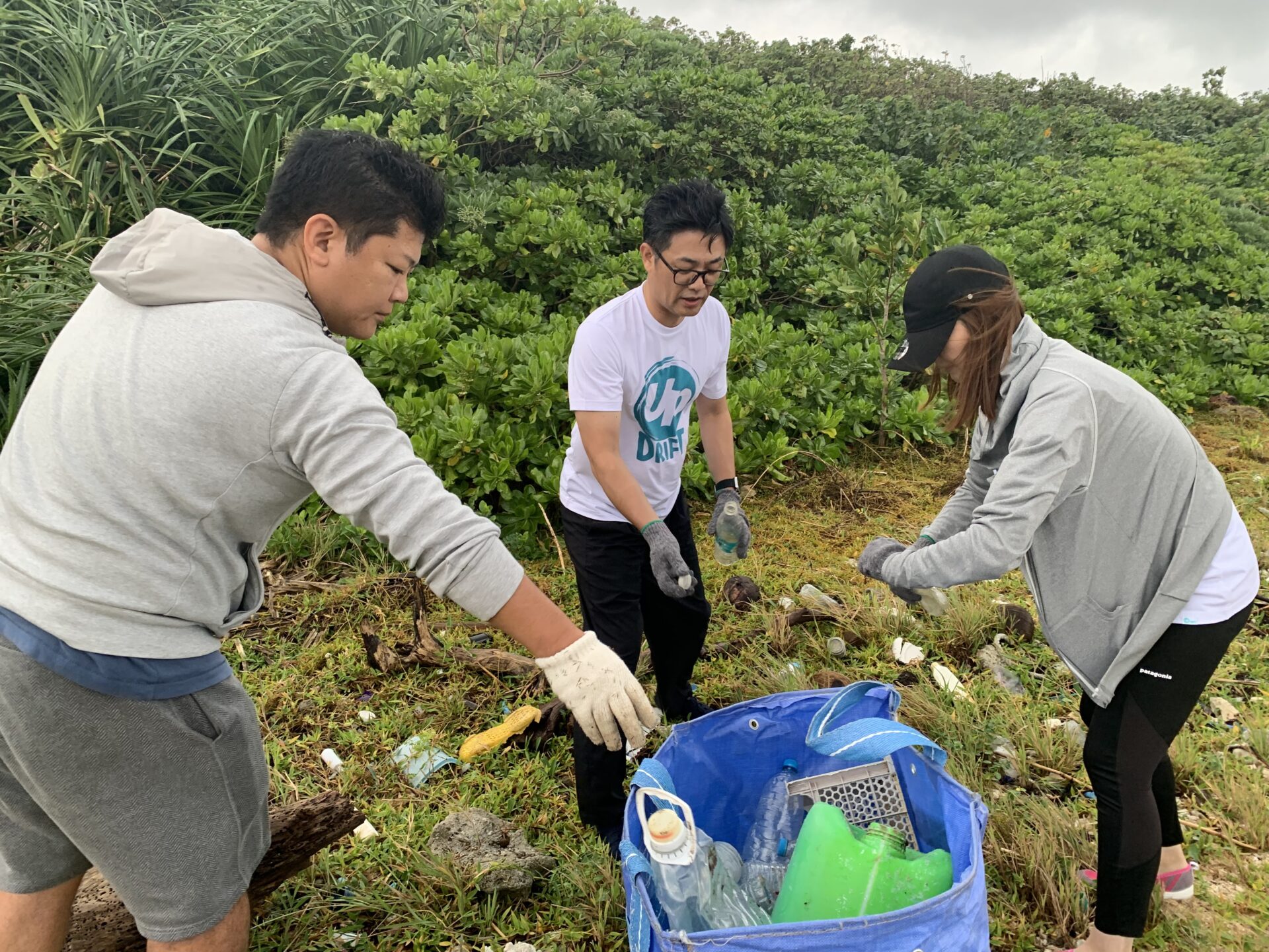 ▲「ドトールコーヒーショップ」でのビーチクリーンの様子、完成した新ユニフォーム