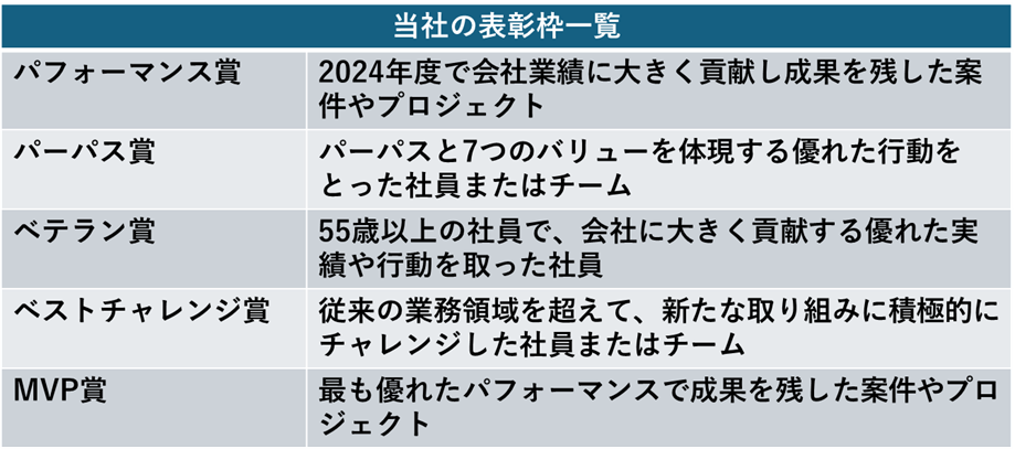 従来の表彰式は、個人の売上を評価する賞を中心に構成されていたことで表彰者にも偏りが生じ、モチベーションアップやエンゲージメント強化につながっていないという課題がありました。一昨年に実施した若手社員が中心のワークショップでリニューアルを望む声があがったことをきっかけに、今回から内容を刷新しました。