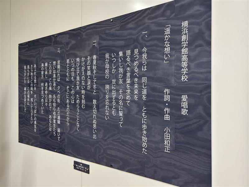 コロナ禍以降、オンラインで全校集会を行っている横浜創学館では、「画面投影用に新しい校歌レリーフをつくりたい」という要望がありました。今回製作した校歌レリーフは、全校集会が配信される選択教室に飾られます。