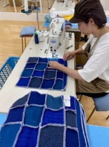 切り出した正方形は、株式会社ソーイング竹内(本社:兵庫県多可郡 代表取締役社長:竹内 裕児)にて、1つ1つ手作業で縫製や検品を行いました。