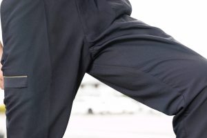 必要な携行品を入れることができる収納力の高いデザインです。脇下や股下は立体構造で動きやすさを高めています。荷物の落下防止のため、ファスナーやドット釦を取り付けたポケットや、逆玉縁ポケット(ターンポケット)を採用しています。