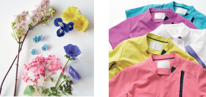 美しさと同時に生命力を感じさせる花々をイメージした、見る人にも着る人にも好印象を与えるニュアンスカラーを使った人気シリーズ。メンズアイテムを拡充し、男女ペアでの着用の幅が広がりました。多色採用しても、花束のように違和感なくなじみます。職種での色分けや院内コーディネートも可能です。