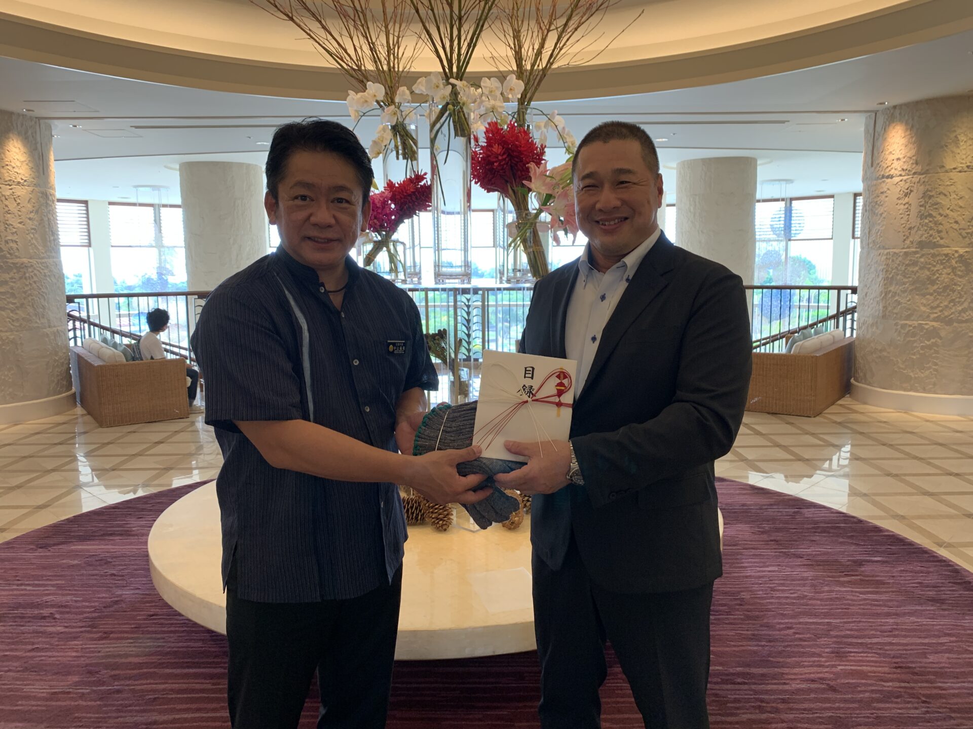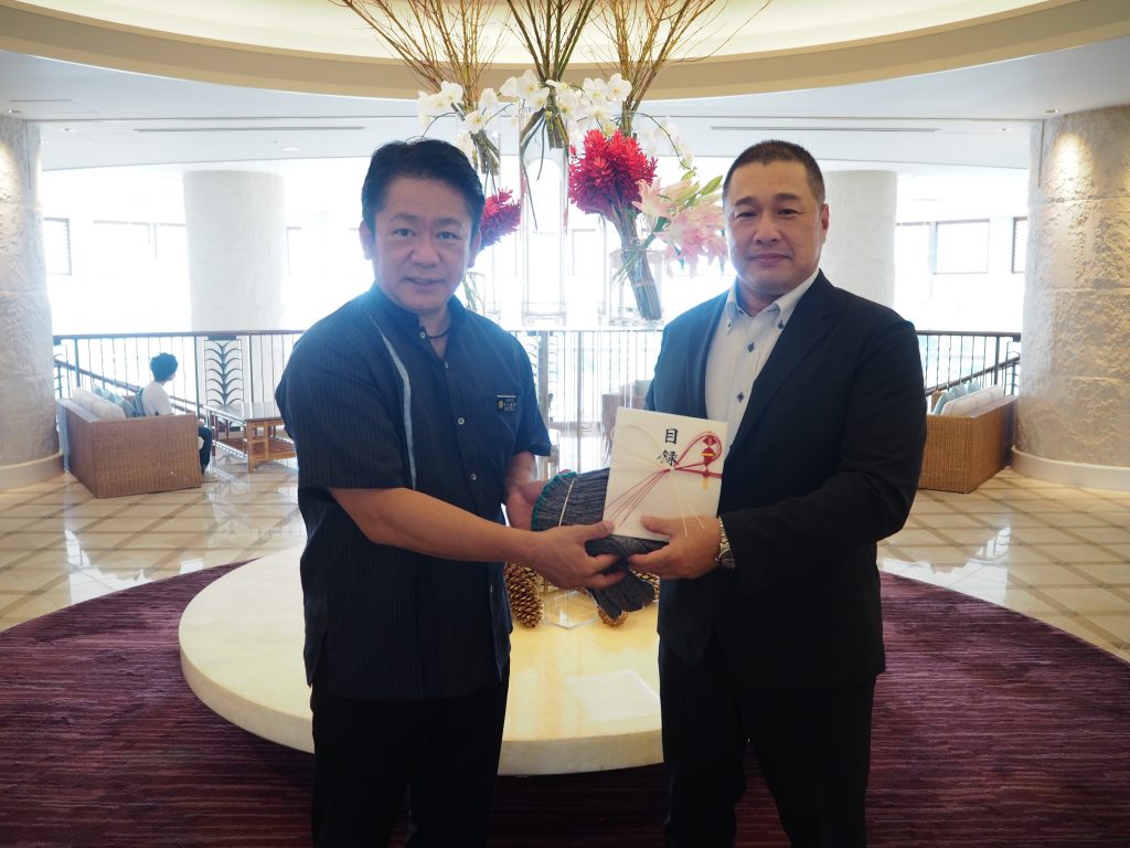 左:石垣市長 中山義隆様 右:オンワード商事株式会社 代表取締役社長 村上哲