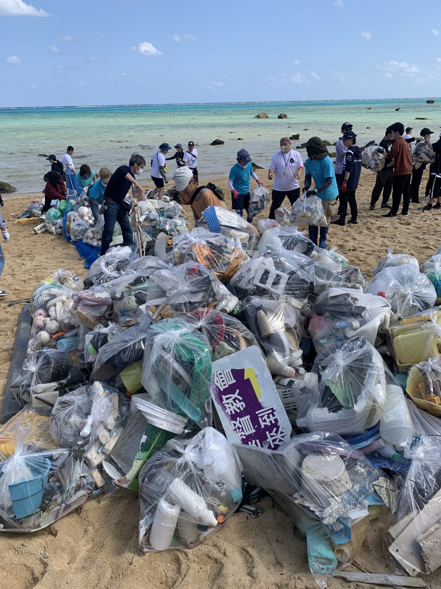 今回、豊島株式会社の「UpDRIFT」に賛同する企業や、学生、ボランティア、地元の方々総勢193名とともに海岸のゴミを約4時間かけて回収・分別・運搬を行いました。