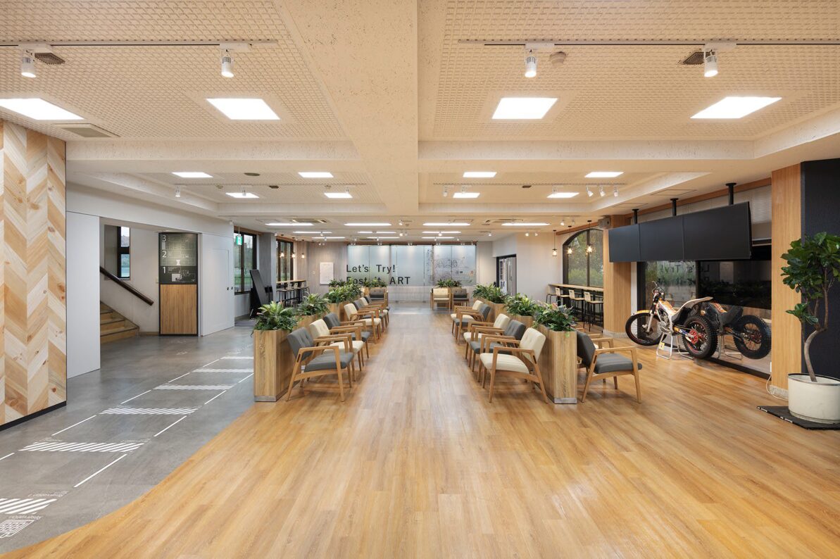 - 従来型の教習所空間とは異なるカフェライクで長期滞在したくなる空間デザイン